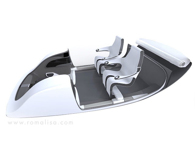 Dua motor listrik in-wheels pada roda-roda depannya mengarahkan kendaraan ini. Dua pintu besar akan terbuka di bagian atasnya untuk keluar masuk. Seperti inikah gadget transportasi di masa depan? Waktu (dan film) yang akan membuktikannya...